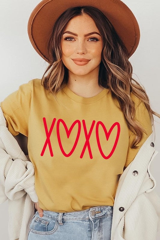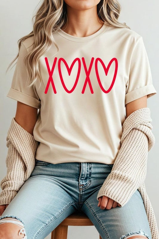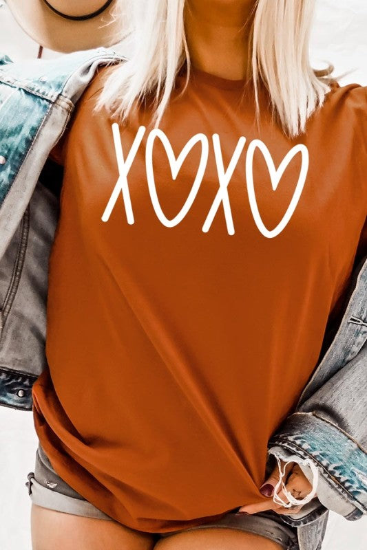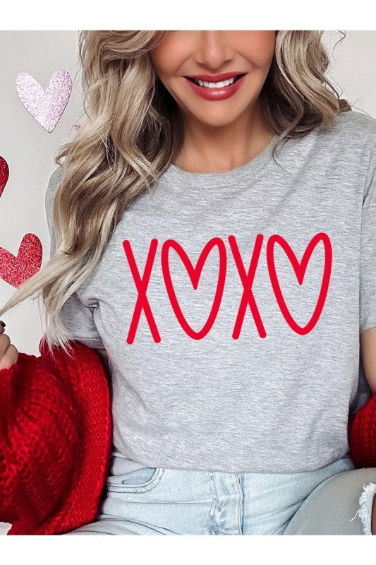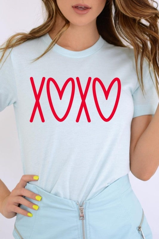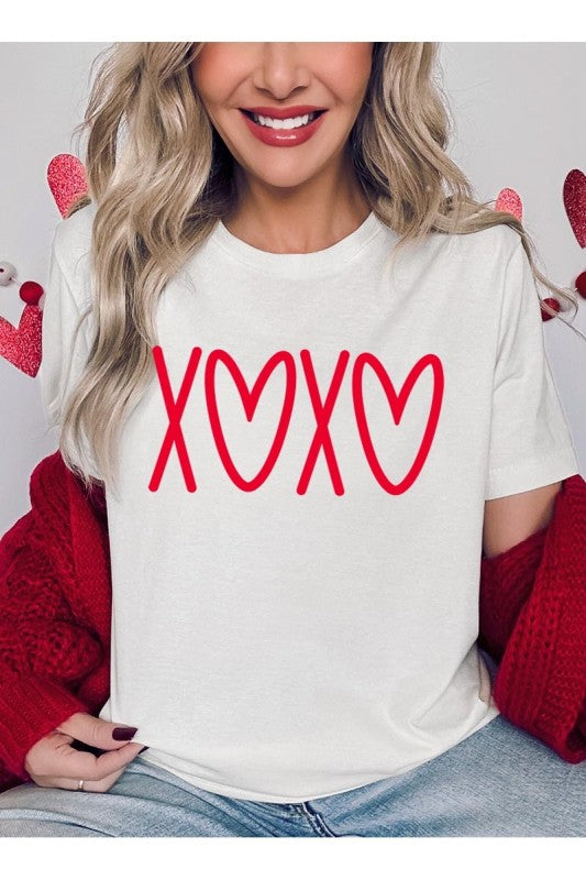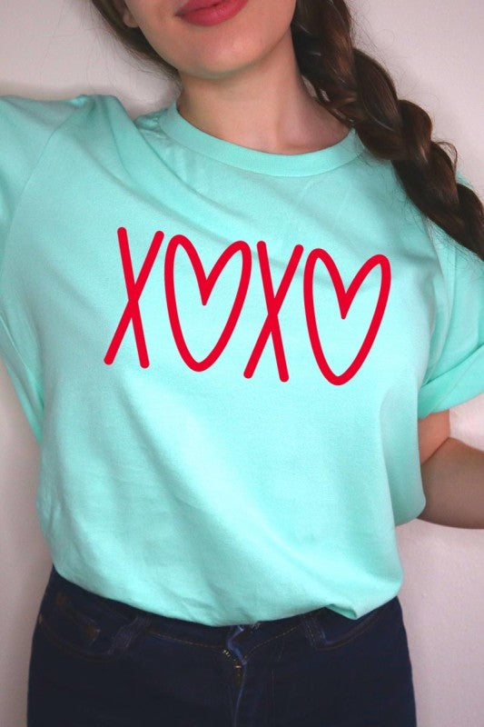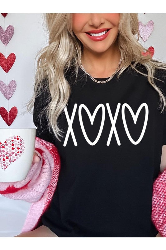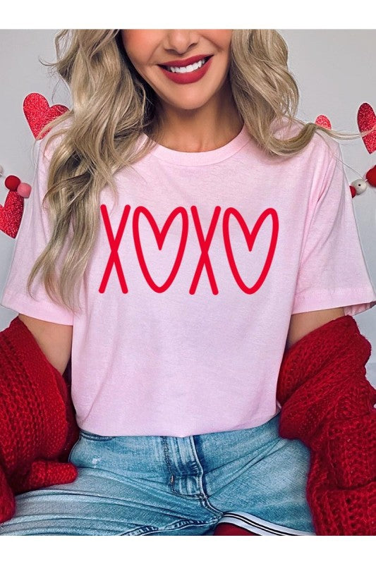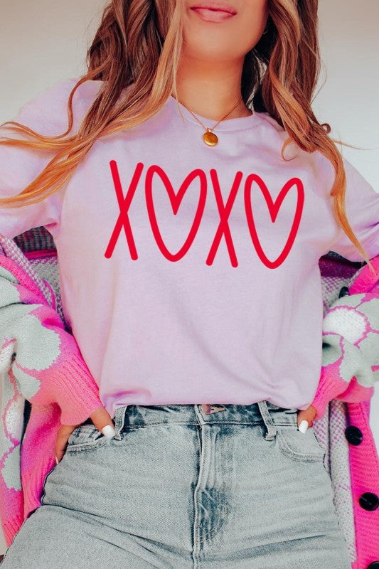 Express your love in style with this charming XOXO Valentine graphic tee! Featuring a romantic love script design with sweet kisses and hugs, this girly pink tee is perfect for celebrating Valentine's Day or showing your romantic side any day of the year.