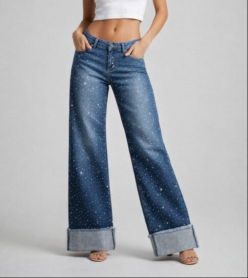 - Dazzling Rhinestone Details: Strategically placed rhinestones catch the light beautifully, adding sparkle and sophistication to classic denim