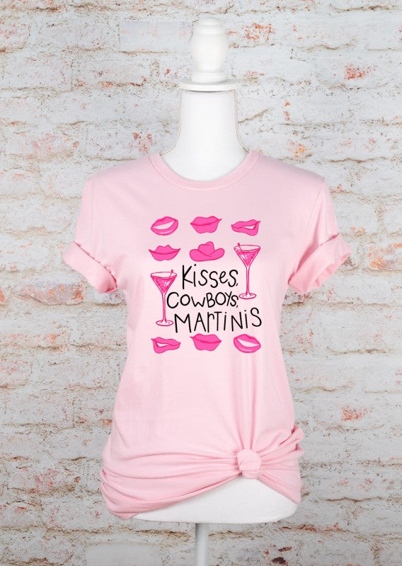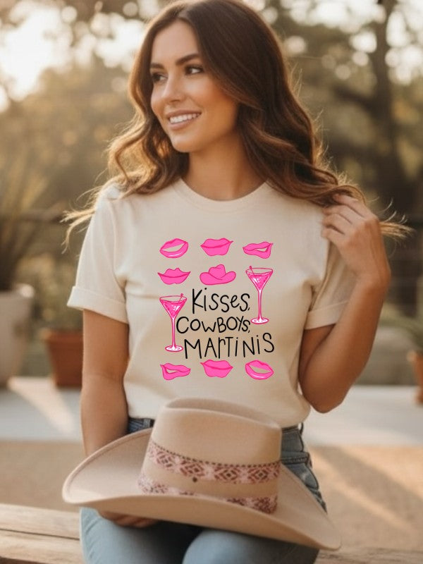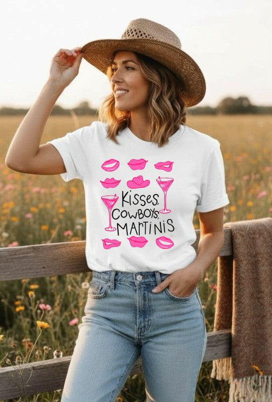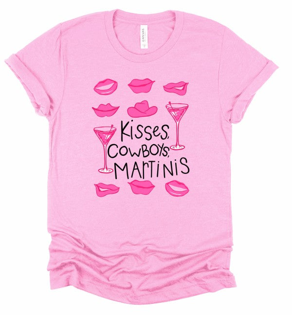 Love, kisses, cowboys, and martinis—this playful graphic tee celebrates all the things that make your heart happy. With its fun, sassy design and modern typography, it's the perfect way to show off your personality this Valentine's season and beyond.