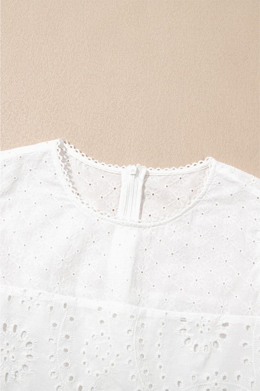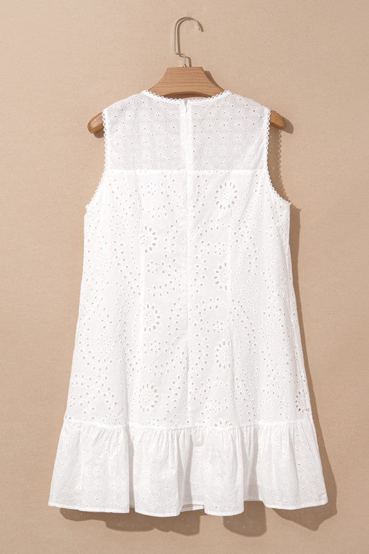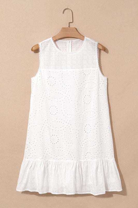 White Floral Eyelet Embroidered Sleeveless Mini Dress