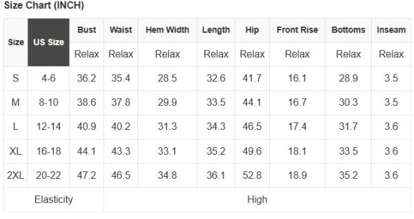 2XL: (Waist), (Hips), (Inseam), (Length)