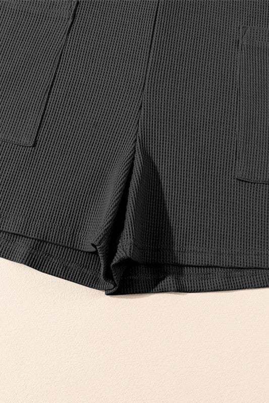 Perfect for those lazy summer days, this sleeveless romper brings effortless style with a playful twist. Crafted from a soft cotton blend with a trendy waffle texture, it's the ultimate go-to piece for warm-weather adventures. The relaxed fit pairs beautifully with practical pockets, because who doesn't love a romper that actually holds your stuff? High stretch fabric keeps you comfy all day long, while the chic U-neckline and button details add just the right amount of charm. Available in multiple colors and sizes to match your vibe. Polyester/Cotton