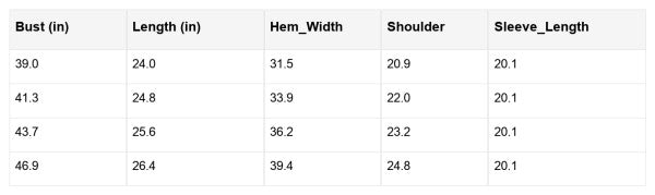 See size chart for measurements.