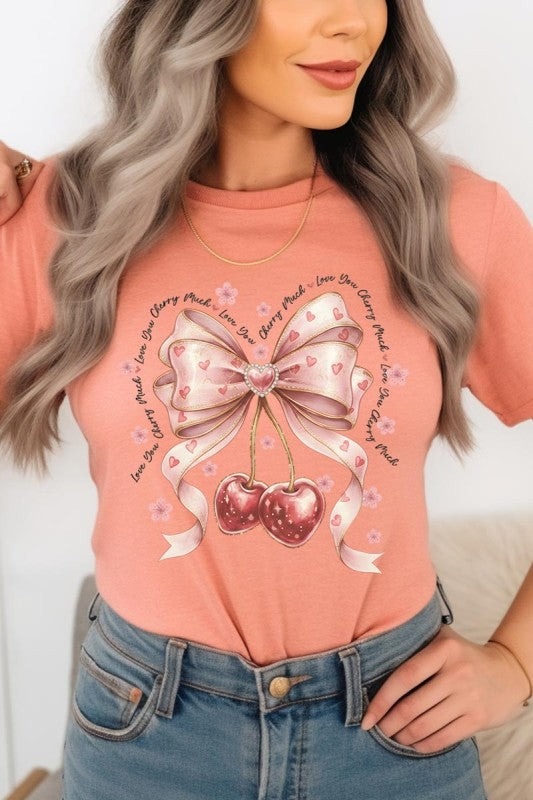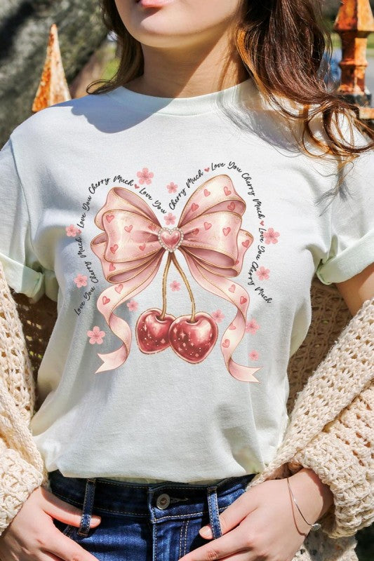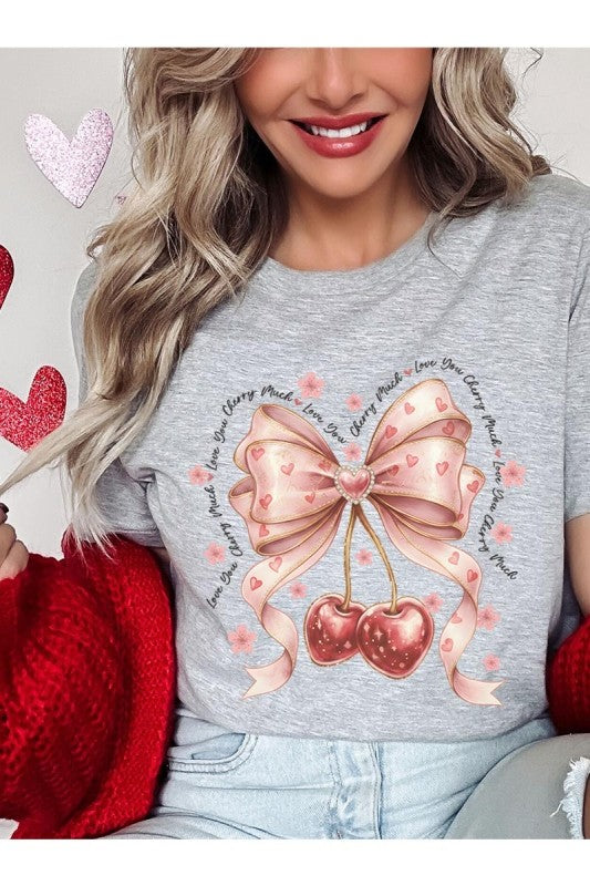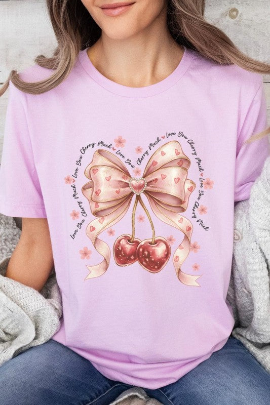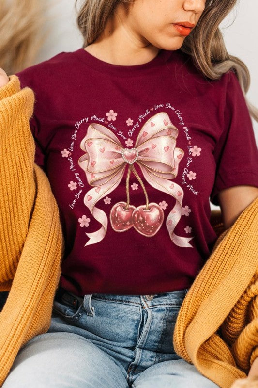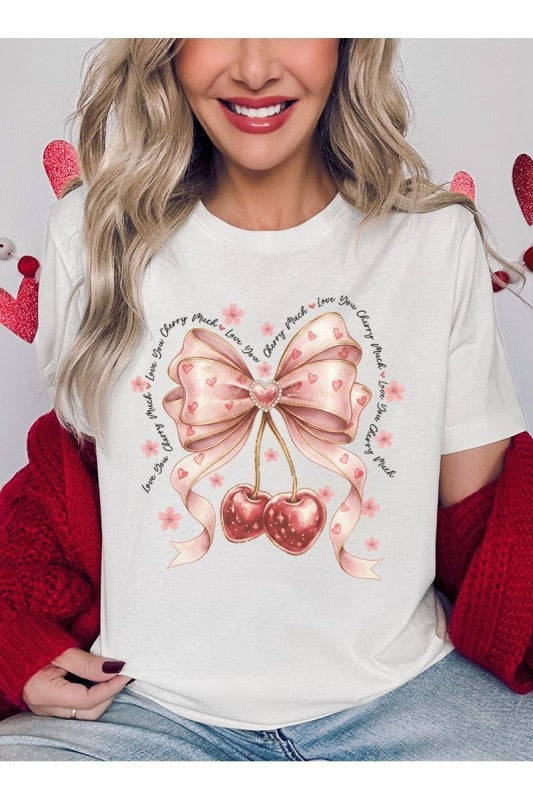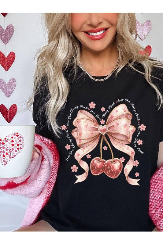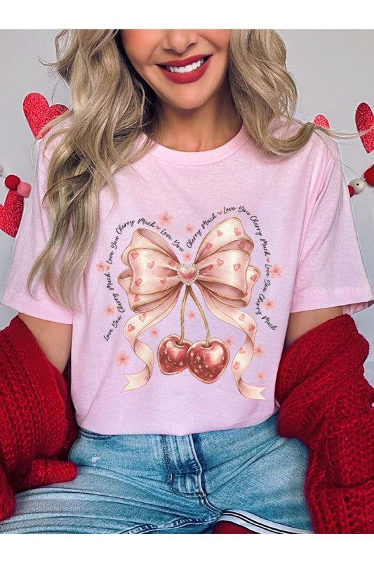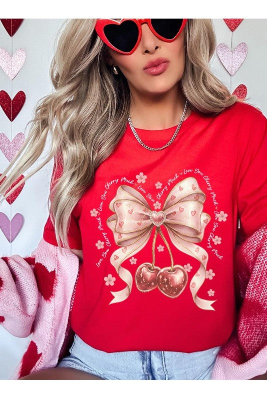 Spread the sweetness this Valentine's Day with this adorable cherry love graphic tee. Featuring a playful pink cherry design with a cute bow accent, this kawaii-inspired shirt is perfect for celebrating love, Galentine's Day, or just adding a touch of whimsy to your everyday wardrobe.