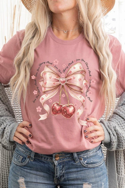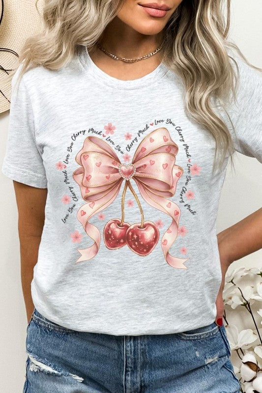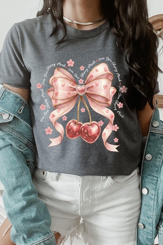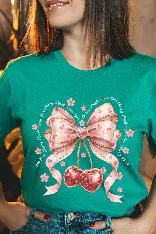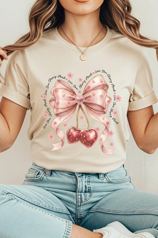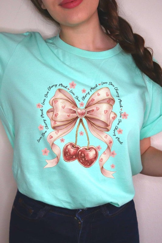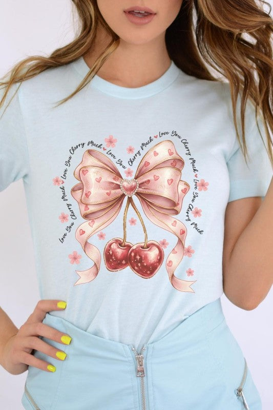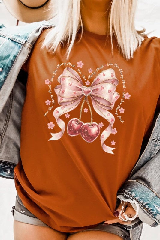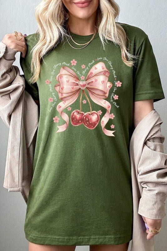 Spread the sweetness this Valentine's Day with this adorable cherry love graphic tee. Featuring a playful pink cherry design with a cute bow accent, this kawaii-inspired shirt is perfect for celebrating love, Galentine's Day, or just adding a touch of whimsy to your everyday wardrobe.